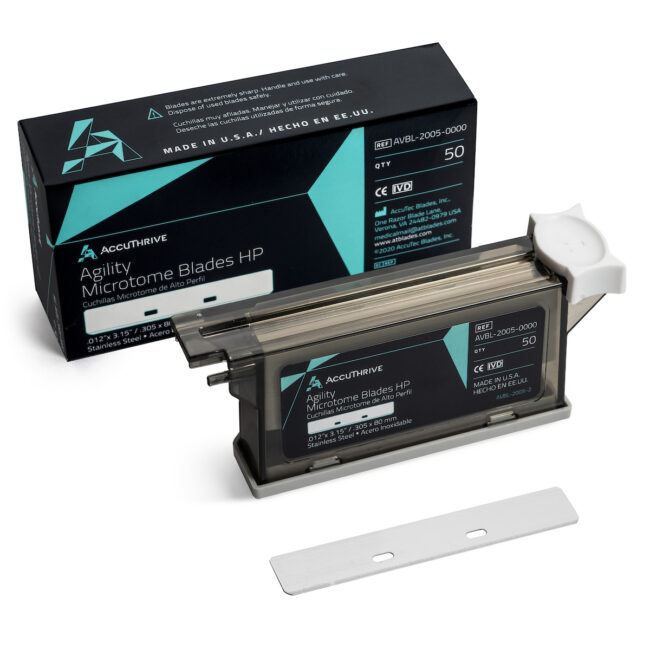 Choose AccuThrive® Agility Microtome Blades for exceptional sharpness, consistent performance, and clear sectioning.