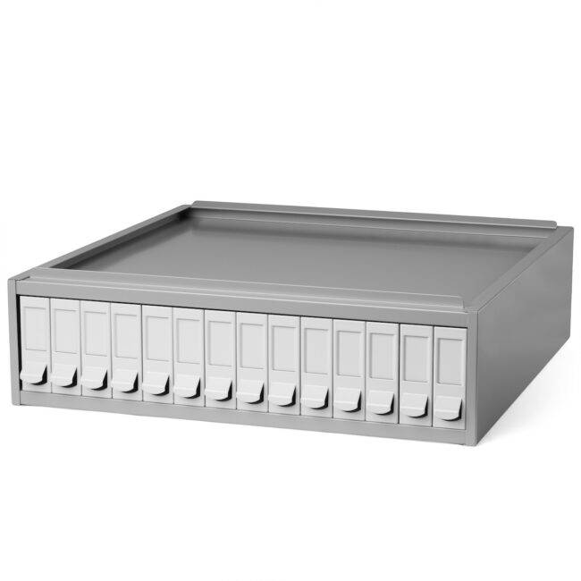The LABSTACK 14-Drawer Vertical Slide Filing Cabinet is designed for dust-free, secure storage with a stackable, space-efficient design. Ideal for organizing lab slides, it offers flexible storage options and high-quality construction.
